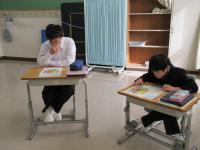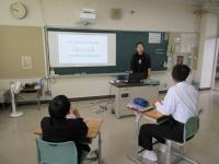 中学部の職業・家庭の授業で、食に関する学習を行いました。その中で、栄養士の先生から「栄養バランスのよい食事」「おいしい!楽しい給食」「安心・安全な給食」「予算(給食費)内で作ろう」などを教えていただきました。